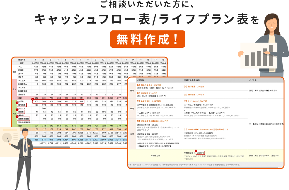 ヒアリングの内容を元に、後日FPがキャッシュフロー表を作成いたします。